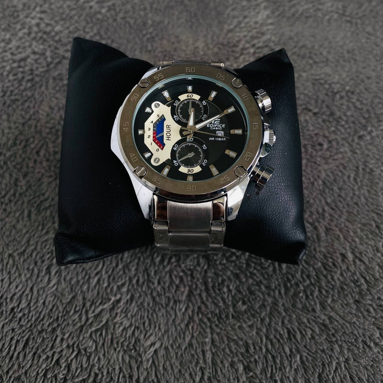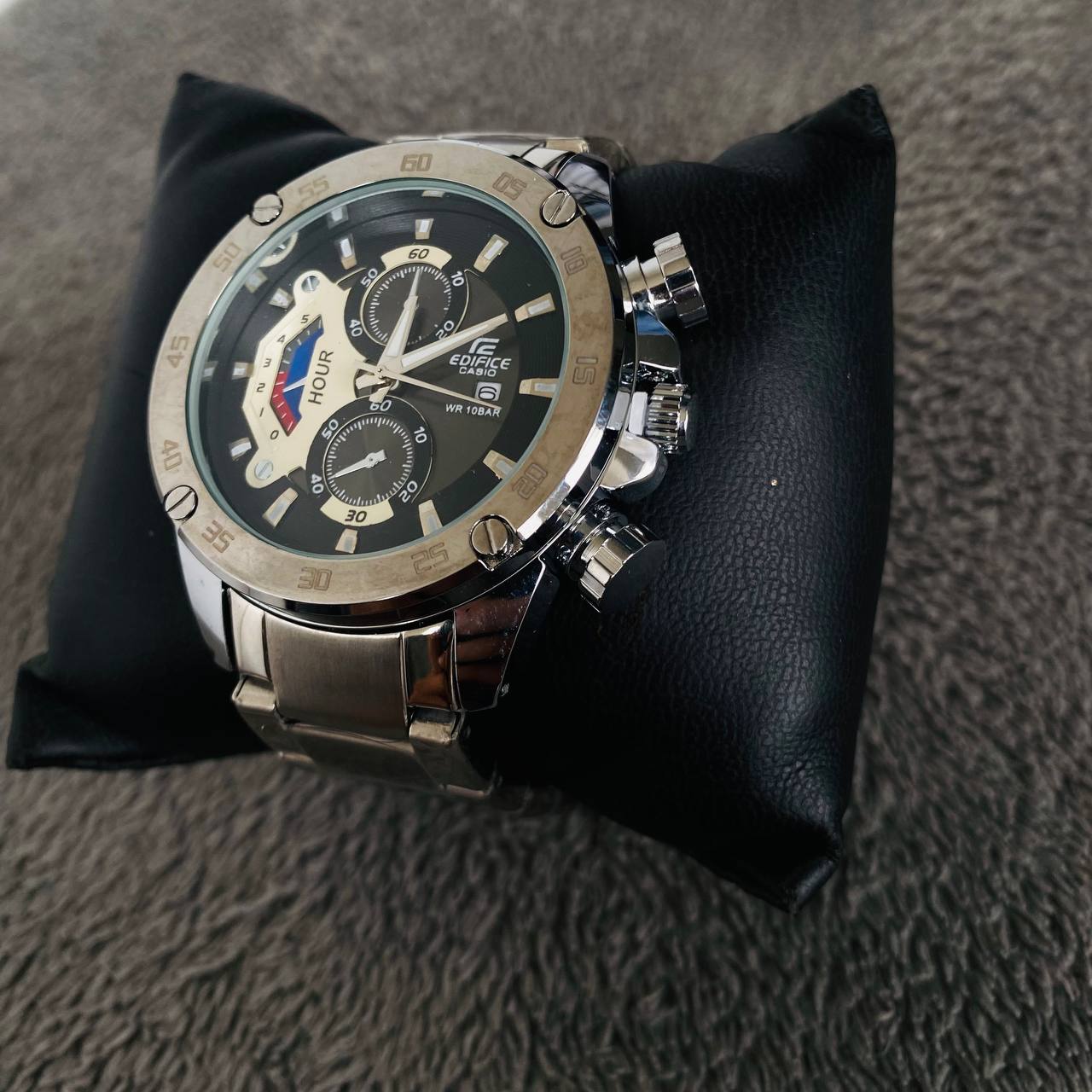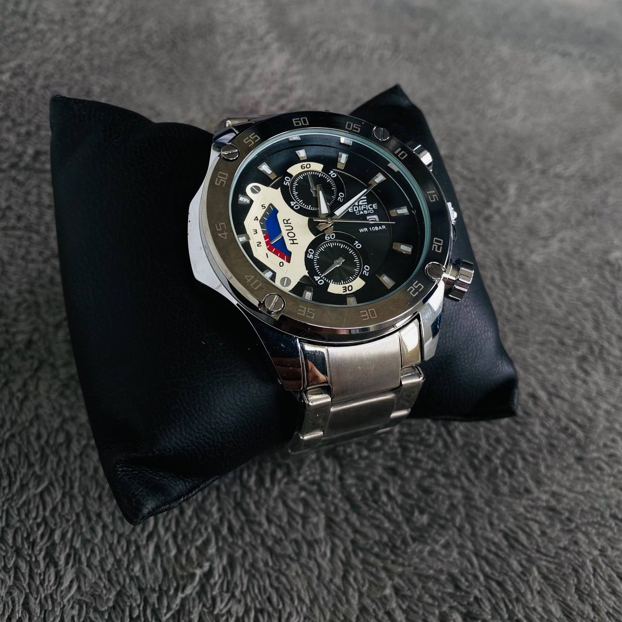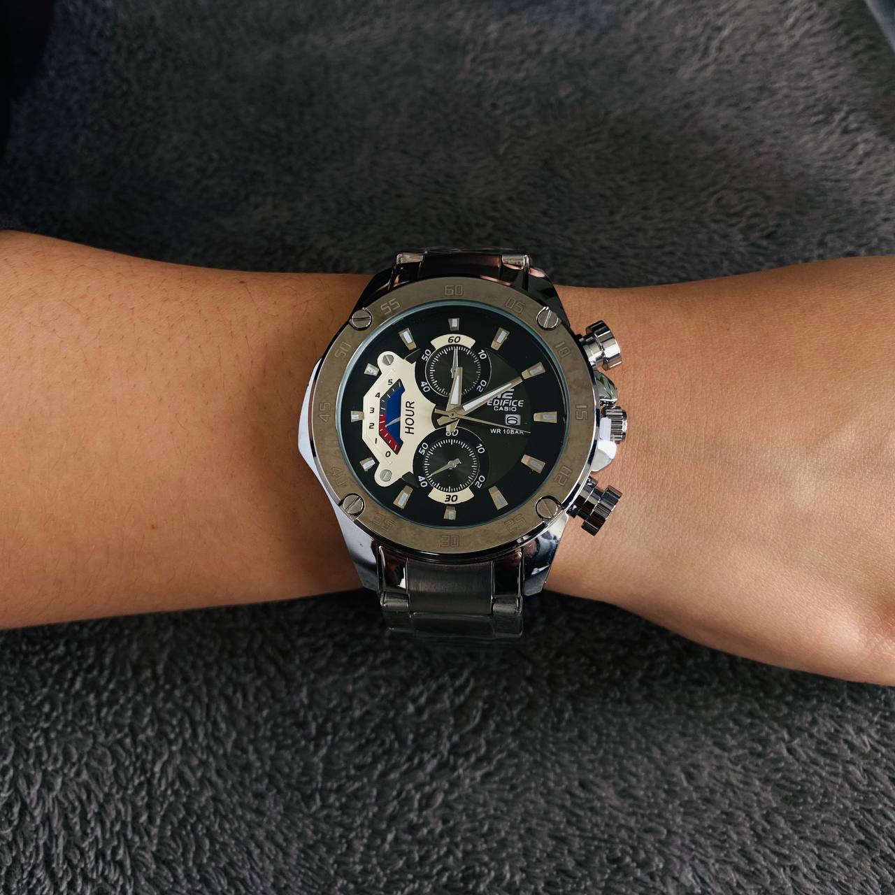 CASIO EDIFICE NEW PLATEADO – TABLERO NEGRO/BLANCO ⌚✨